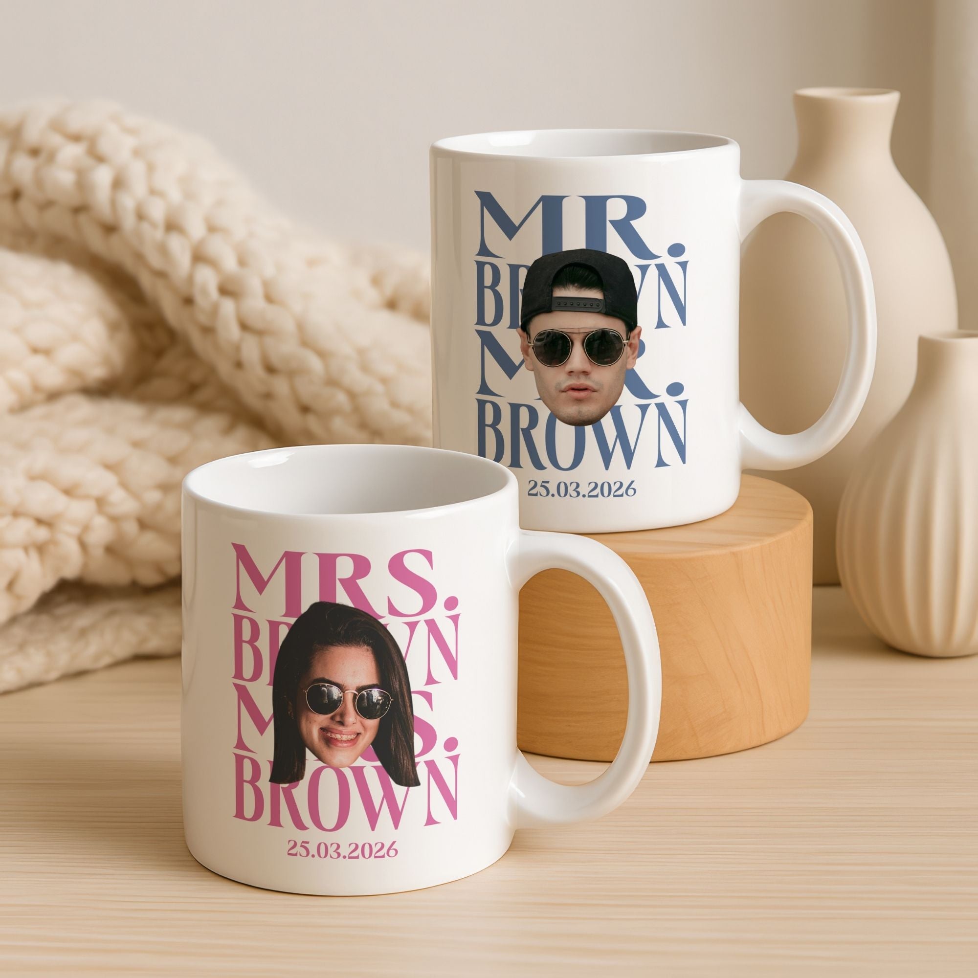 Celebrate your unique bond with our Personalized Mr. & Mrs. Photo Mug Set. Designed with a chic Retro Vibes aesthetic, these mugs aren't just for coffee—they are a daily reminder of your special day. Whether it's for a wedding, anniversary, or just because, this set is the perfect way to say "We belong together."