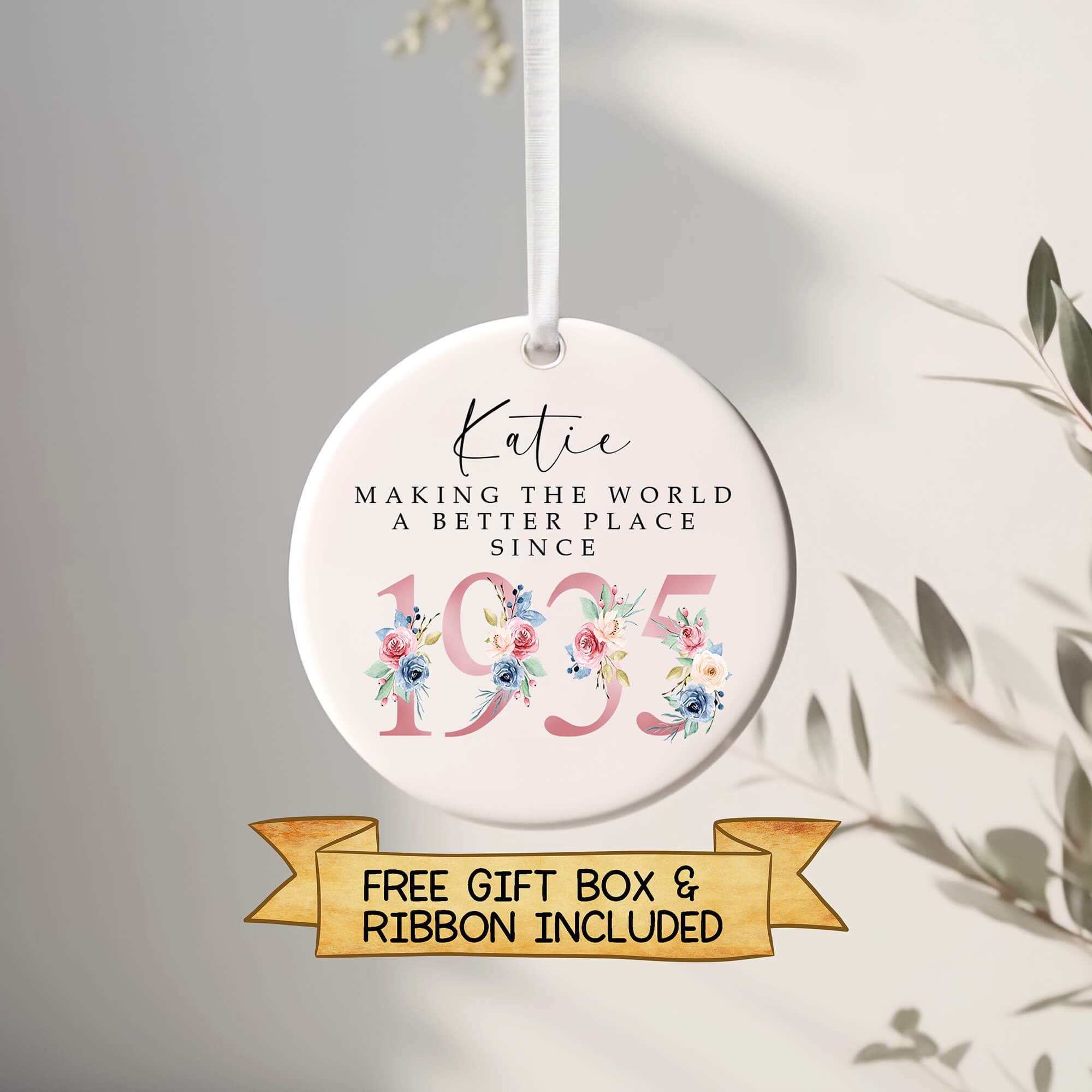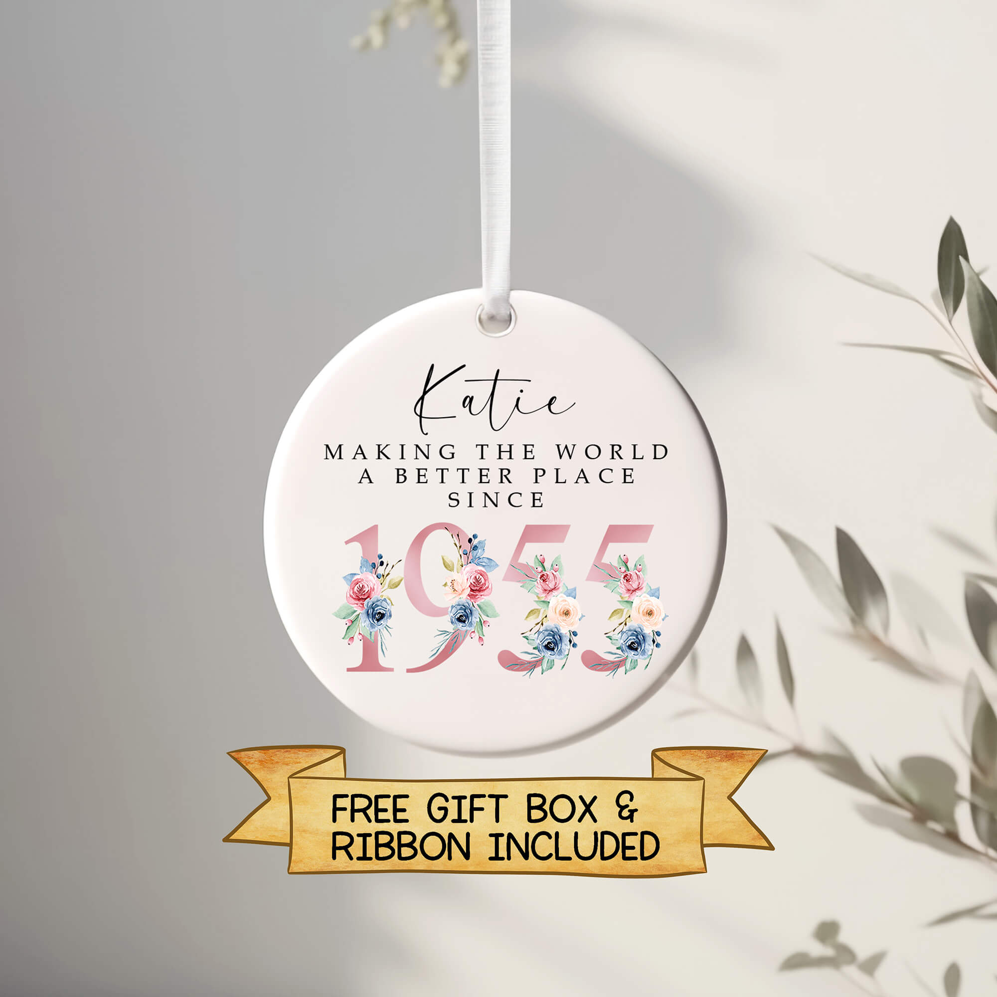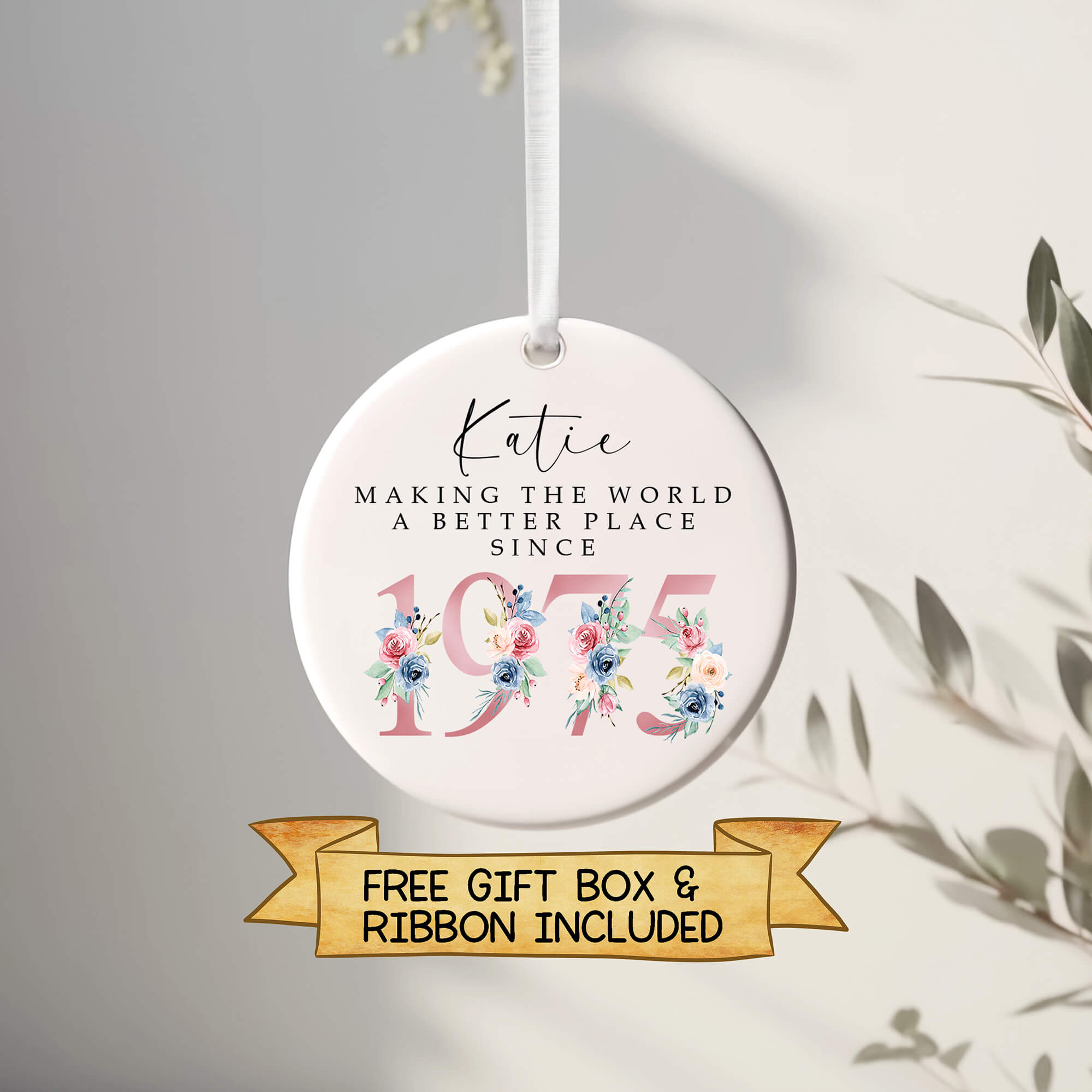 ach ornament comes with a free ribbon and gift box, making it ready to give straight away — perfect for birthdays, milestone celebrations, or Christmas gifting.
