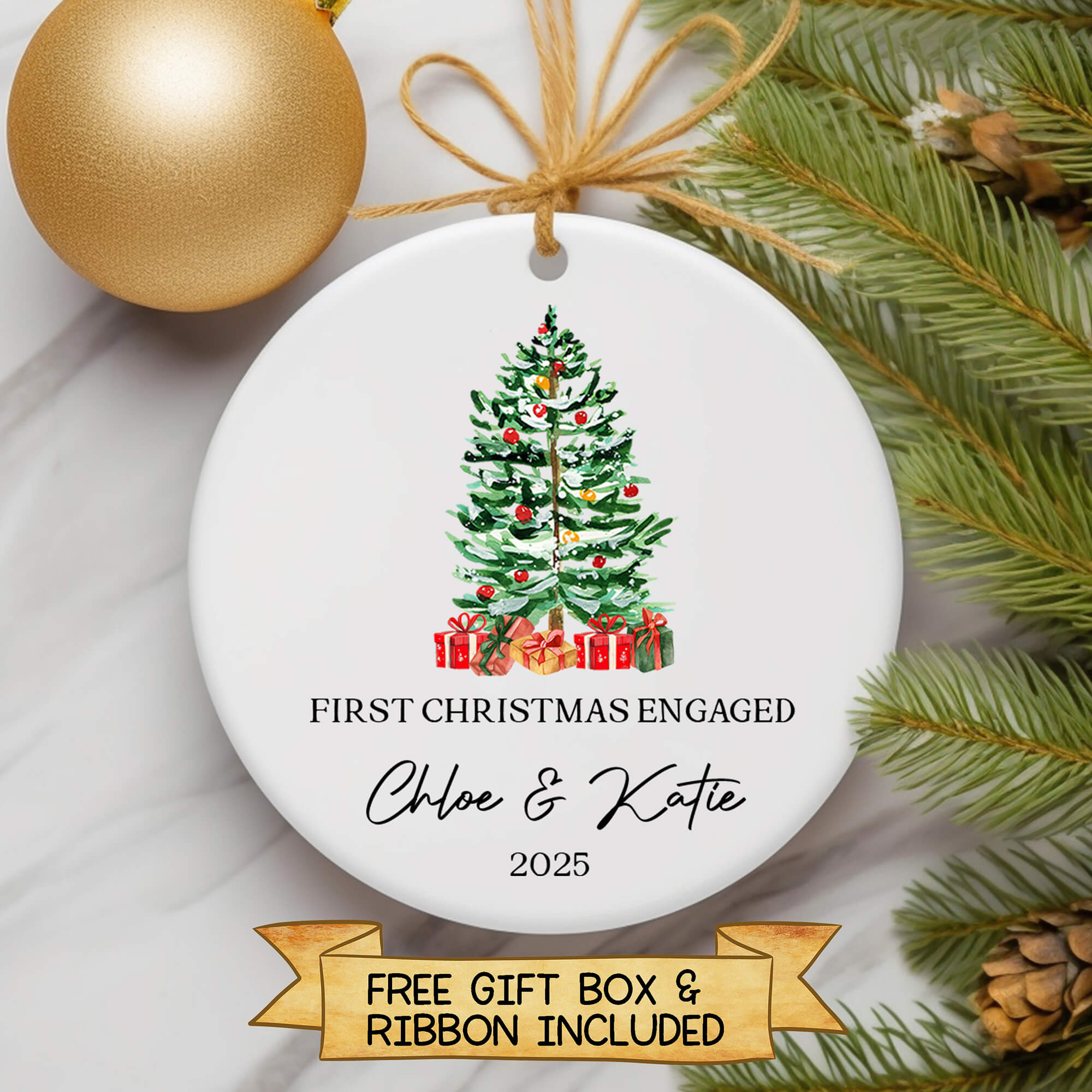 Every ornament includes a free ribbon and gift box, ready for gifting or hanging right on the Christmas tree — no wrapping needed!