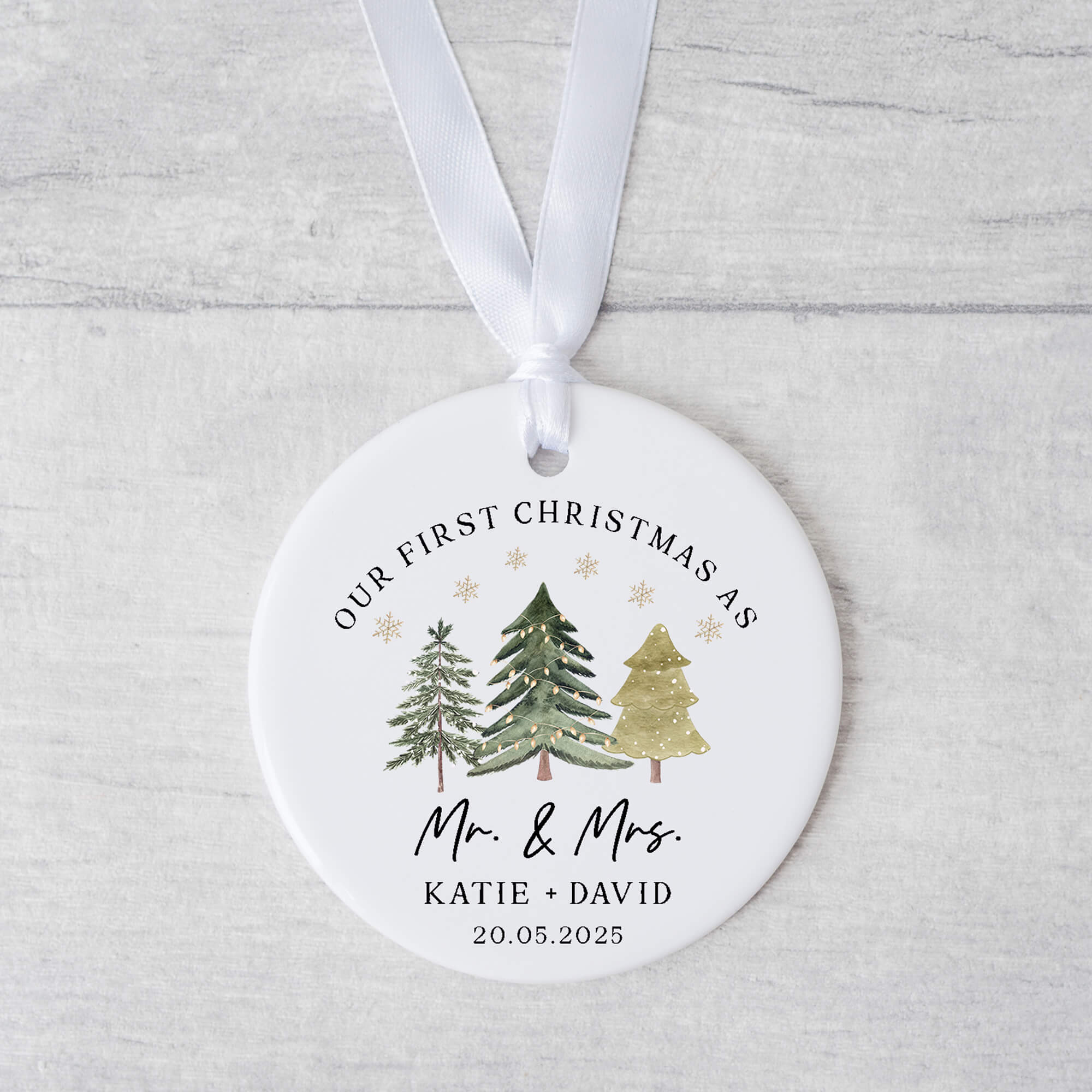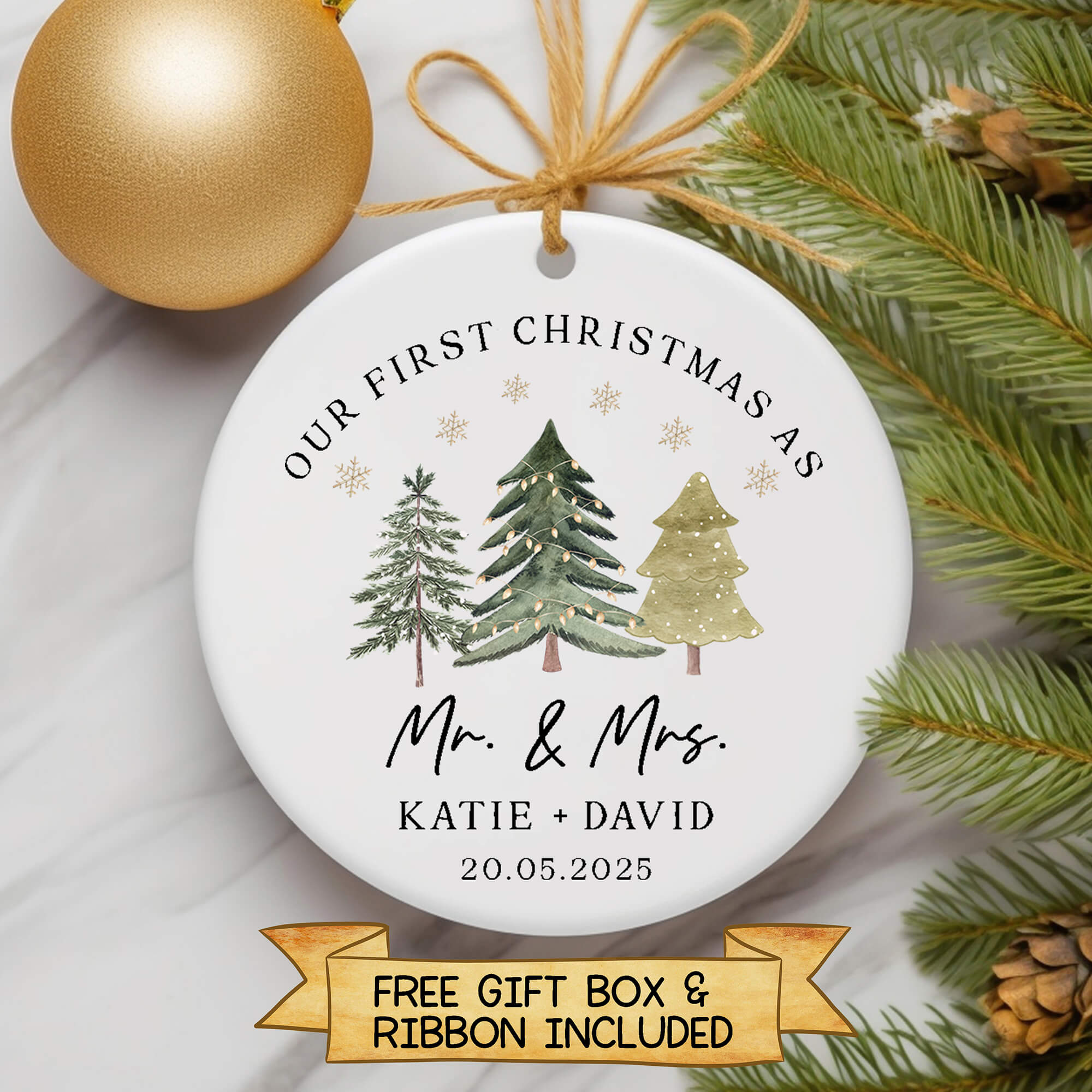 Personalised “Our First Christmas as Mr. & Mrs.” Ornament – Newlywed Christmas Gift