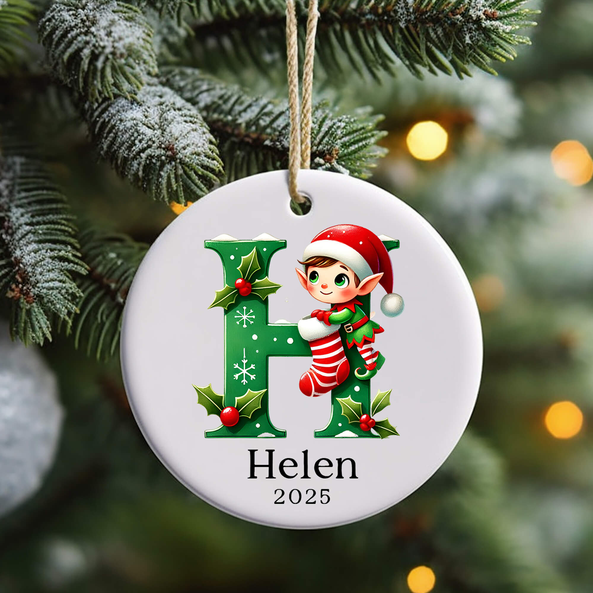 Personalised Elf Initial Christmas Ornament – Custom Name Bauble for Kids