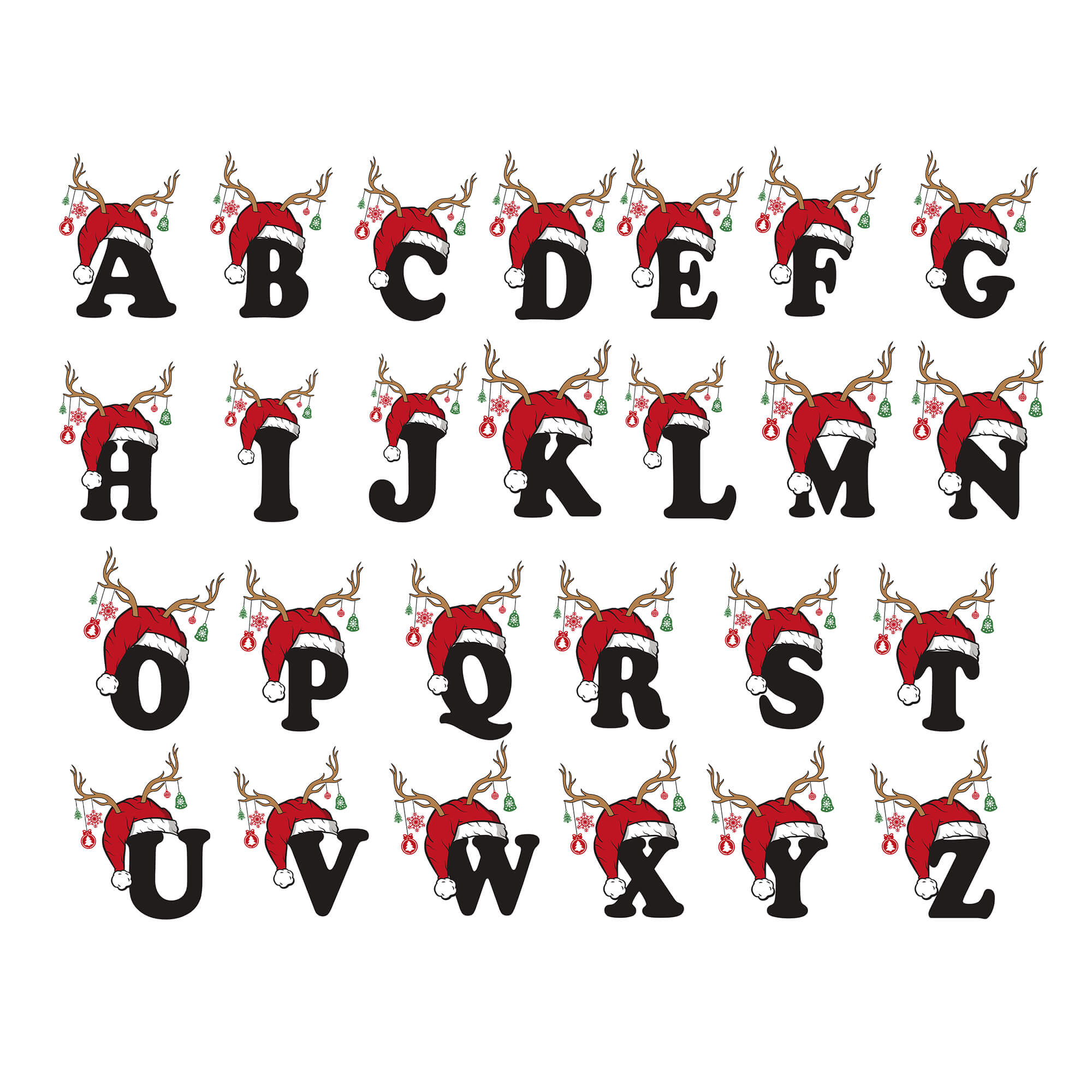 Celebrate the holiday season with this adorable personalised initial ornament, featuring a stylish letter topped with a Santa hat and reindeer antlers decorated with Christmas baubles. Perfect for adding a touch of personality and festive cheer to any Christmas tree!